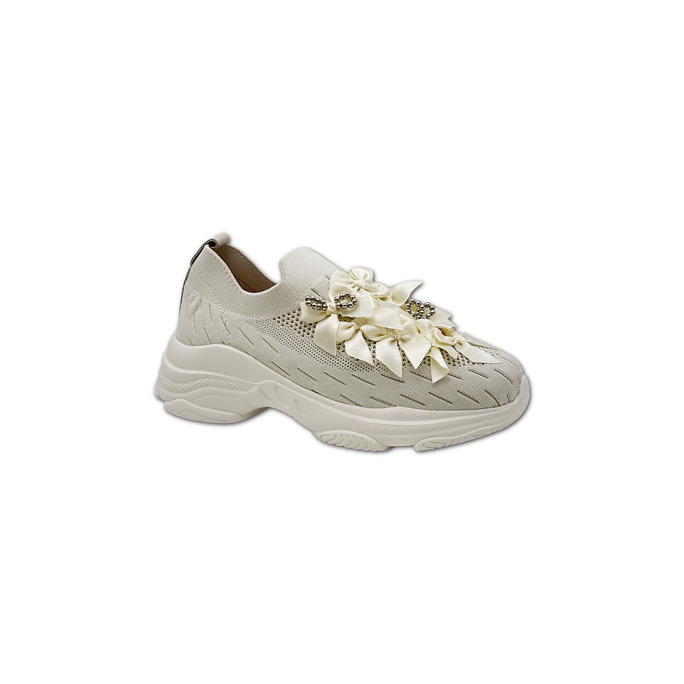 米白飛織蝴蝶結運動鞋